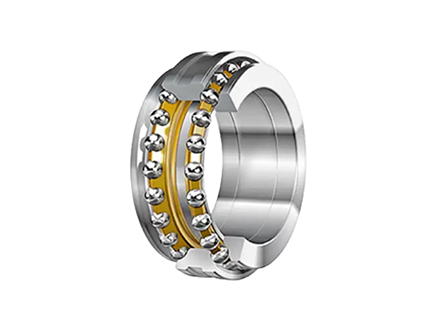 雙向推力用接觸球軸承由兩個軸圈、一個座圈、一個隔套和兩列滾動體及保持架組件組成。修磨隔套的厚度即可調(diào)整軸承的間隙和預緊。軸承的接觸角為60°。該軸承的公稱外徑和與其配套的雙列圓柱滾子軸承的外徑相同,但外圈與箱體孔之間有間隙,因而,雙向推力角接球軸承不承受徑向載荷,與雙列圓柱滾子軸承配套使用以承受雙向軸向載荷。